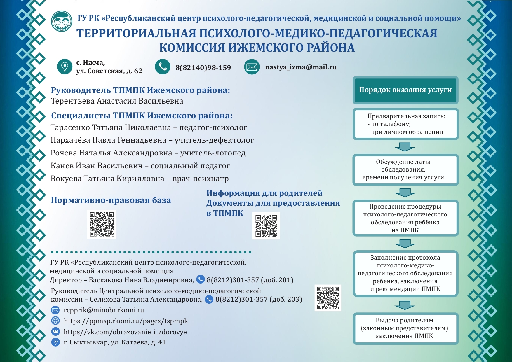 На территории муниципального района «Ижемский» Республики Коми функционирует территориальная психолого-медико-педагогическая комиссия.